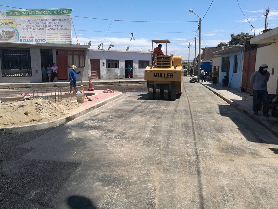 Hoy domingo el alcalde de santa Sr. Germán Rojas Soto estubo presente en los trabajos de asfaltado en el A.H. Santa Rosa, de esta manera se vienen culminando con esta importante obra, la cual se estará entregando en los próximos dias.