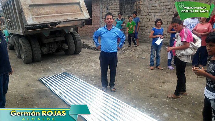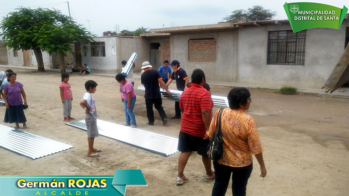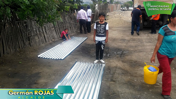 La Municipalidad Distrital de Santa realiza entrega de calaminas a familias de escasos recursos económicos de Santa y el Valle, a fin brindar la protección ante los efectos del fenómeno El Niño.