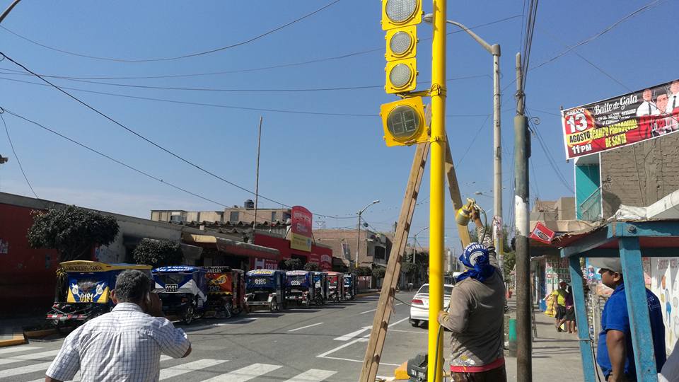 Seguimos con las mejoras en la transitabilidad en las principales calles de nuestro distrito, luego de recuperar la zona invadida por comerciantes informales ahora se viene realizando el mantenimiento a los semáforos y a las señales de tránsito.