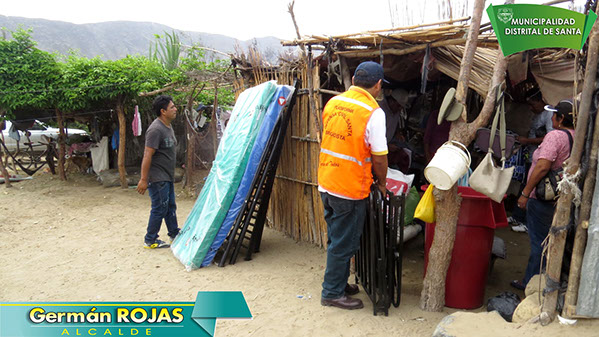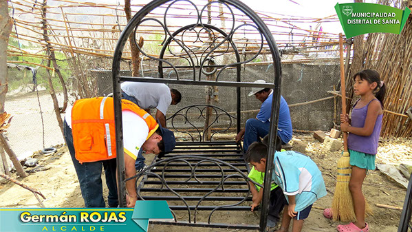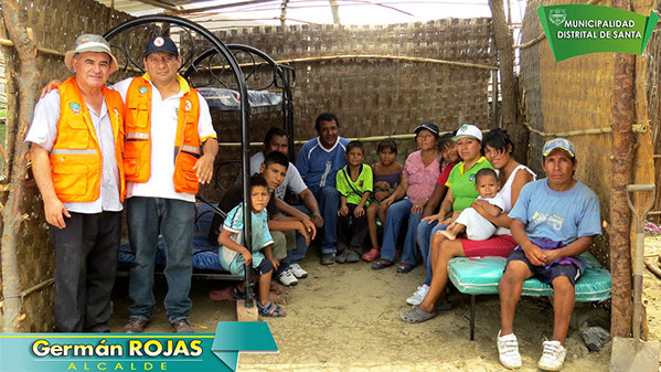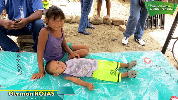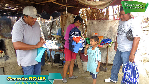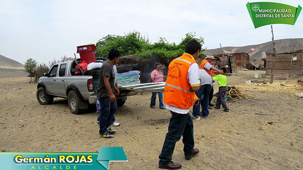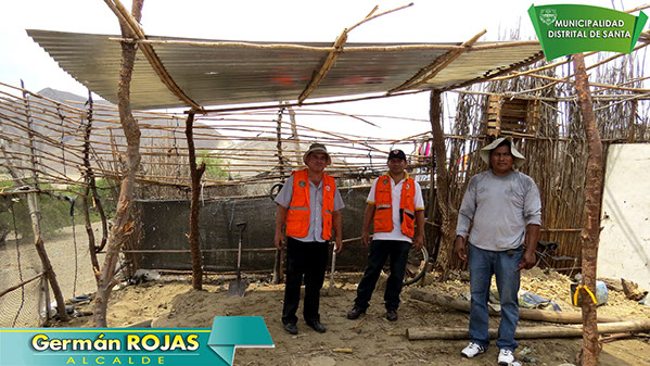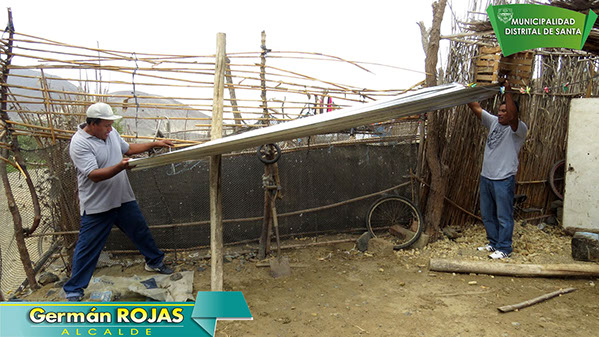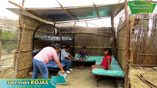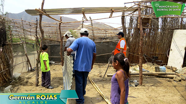 En un trabajo conjunto de Defensa Civil, DEMUNA CIAM y Regidores de la Municipalidad Distrital de Santa, brindaron el apoyo a la Sra. Alcaida Violeta Trujillo Reyes y a sus menores hijos, familia en condición de extrema pobreza, ubicada en el sector Santa Cruz del centro poblado Tambo Real Histórico.