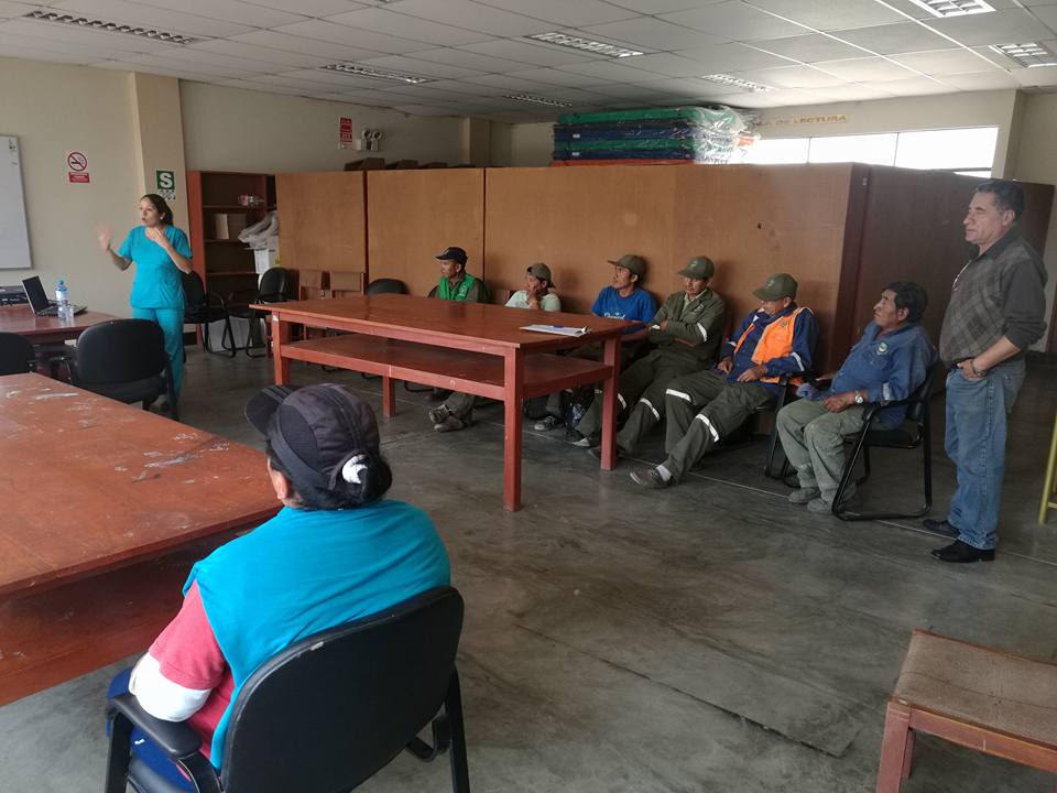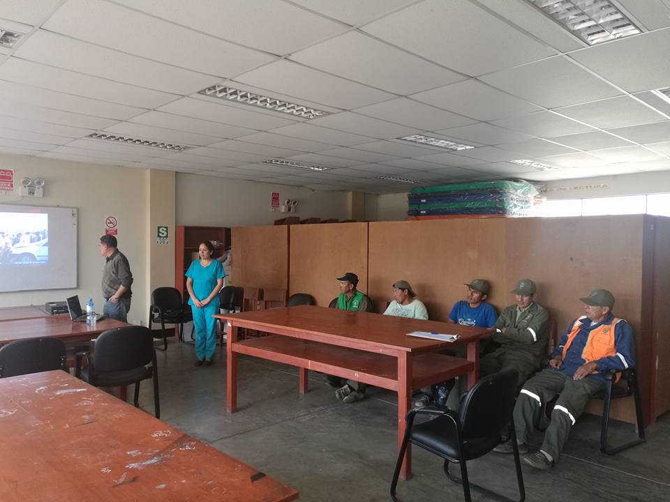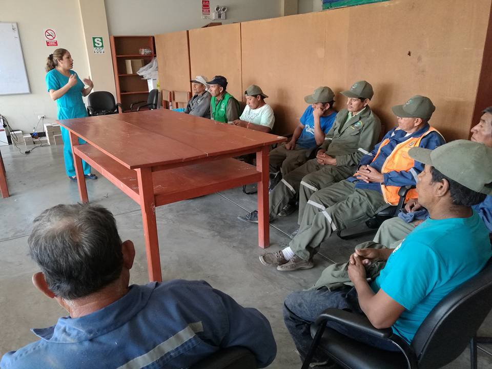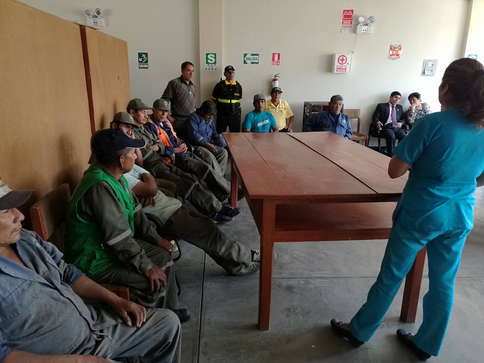 Se le brinda constante capacitación a los trabajadores que realizan la labor de limpieza pública en nuestro distrito, con la finalidad de que puedan brindar un servicio de calidad y a su vez también la entidad no solo le ofrece una oportunidad de trabajo sino tambien de aprendizaje. Para ello se contó con la presencia de una representante del Centro de Salud Santa, quien brindó una brillante exposición sobre primeros auxilios, estuvieron presentes tambien el Sub Gerente de Medio Ambiente, el Gerente Municipal Lic. Omar Tamayo Quiliche y la regidora Domitila Quiñones.
