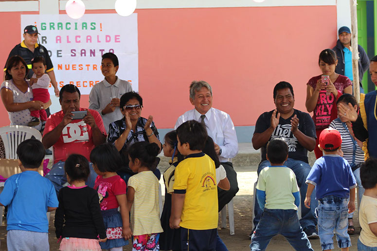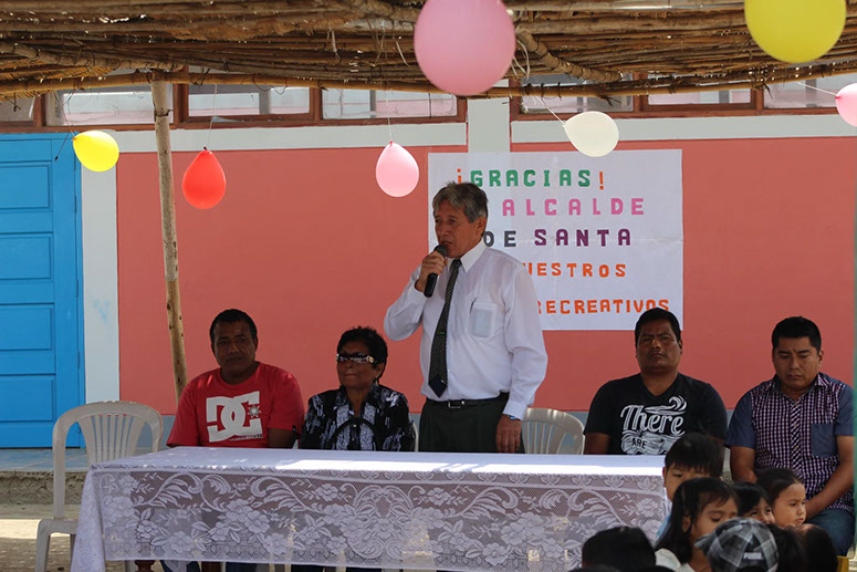 En un ambiente de gran alegria el alcalde de Santa, Sr. Germán Rojas Soto, hizo entrega de Juegos Recreativos a la I.E.I. 1581 de Tambo Real Nuevo, padres de familia, maestros y alumnos se mostraron muy agradecidos ante las autoridades por este gran gesto. Como muestra de esta alegria los mas pequeñitos bailaron y cantaron a modo de agradecimiento. con esto, el alcalde de Santa sigue brindando apoyando a la educación.