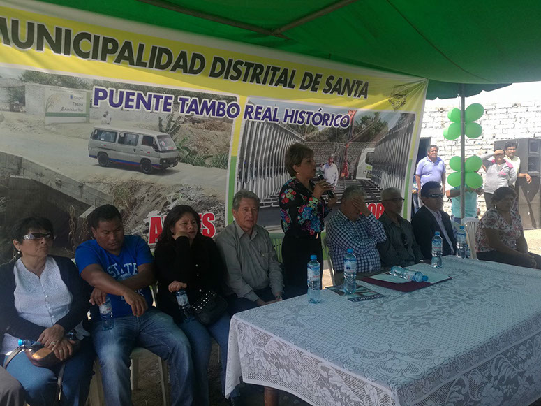 Con presencia de imporantes autoridades como el Congresista de la República Ing. Ricardo Narvaez Soto, la alcaldesa provincial Victoria Espinoza, la alcaldesa de Samanco, Dora Loloy, regidores de la comuna santeña, funcionario y pobladores del sector, se inauguró la anhelada obra del puente de Tambo Real Histórico. El alcalde Germán Rojas Soto agradeció la visita de tan distinguidos invitados y se comprometió a seguir trabajando en la búsqueda del desarrollo de nuestro distrito de Santa.