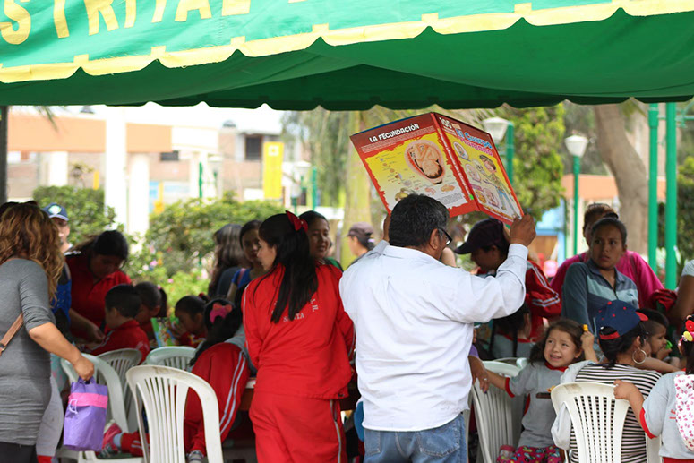 Como en días anteriores siguen las actividades por celebrarse el día de la Biblioteca Escolar, esta vez se invitó a la I.E.I. 1554 Javier Heraud, para que los niños puedan apreciar los libros y cuentos infantiles ademas de la proyección de cuentos animados, el equipo de trabajo de la Biblioteca Municipal Ricardo Palma, acompañados de la Regidora Domitila Quiñones y el Gerente Municipal Lic. Omar Tamayo expresaron su satisfacción por la labor realizada en favor de la niñez.