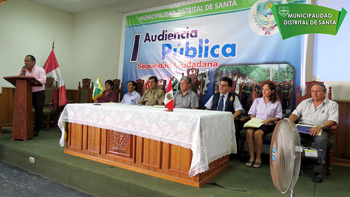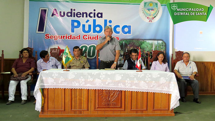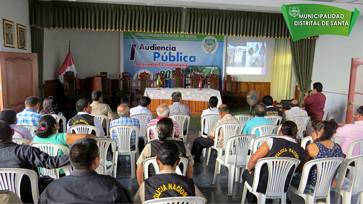 La Municipalidad Distrital de Santa realizó la Primera Audiencia Pública descentralizada de Seguridad Ciudadana del año 2016, donde se expusieron las diversas acciones que vienen realizando las diferentes comisiones durante el primer trimestre del presente año.