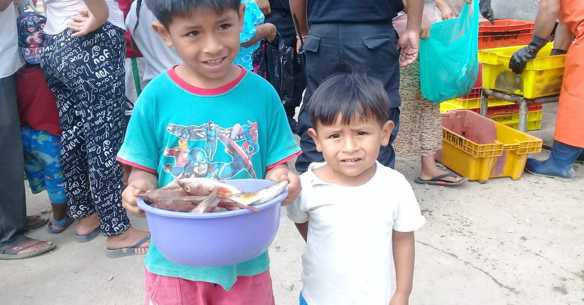 >>> Entrega de pescado en varios sectores del distrito de Santa. | Fotos: Imagen Institucional.