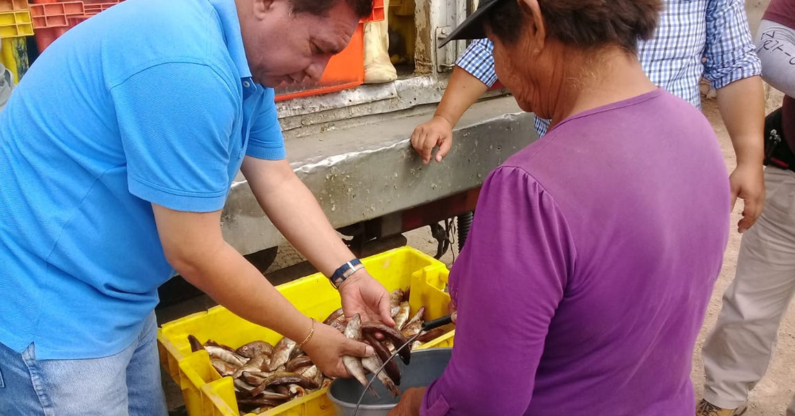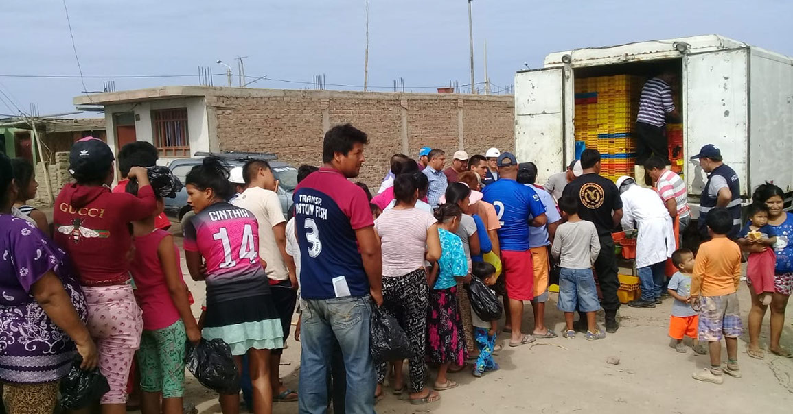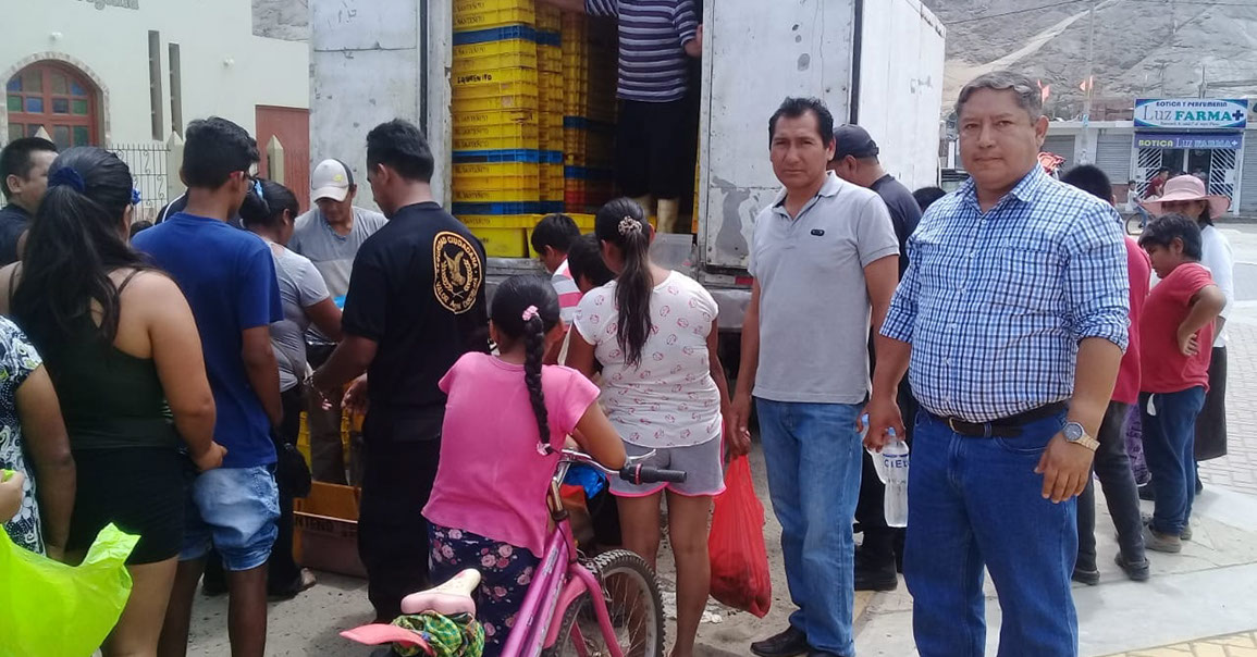 Gracias a la gestión del alcalde Eugenio Jara Acosta ante el Ministerio de la Producción - Lima, se pudo concretar la entrega de 4 toneladas de pescado en diferentes zonas de nuestro distrito de santa y del valle.