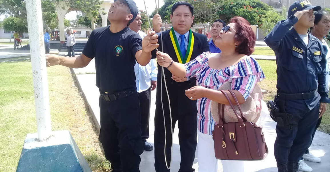 Nuestra autoridad Municipal Eugenio Jara encabezó este cuarto izamiento del pabellón descentralizado realizado en Tambo Real Histórico, se contó con la presencia de los regidores Jorge Espejo, Oscar Gonzales y Eligio Obeso, además de dirigentes del sector y población en general.