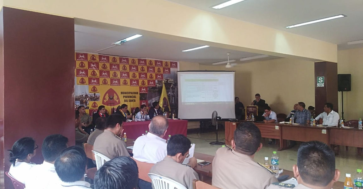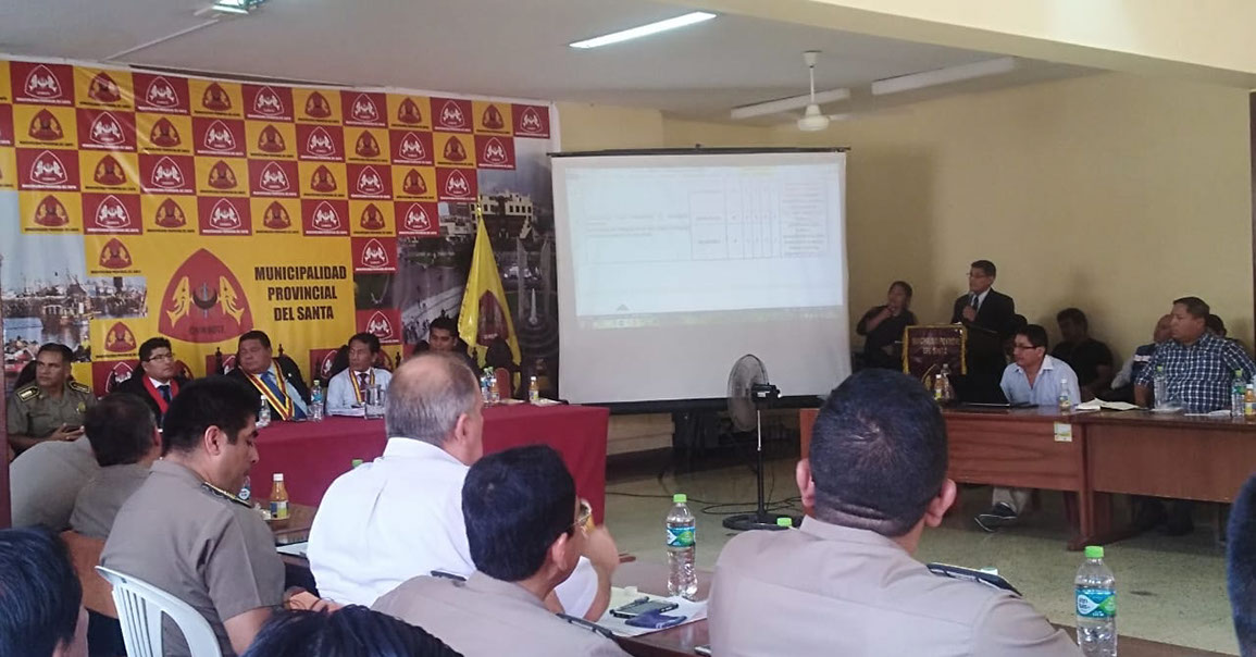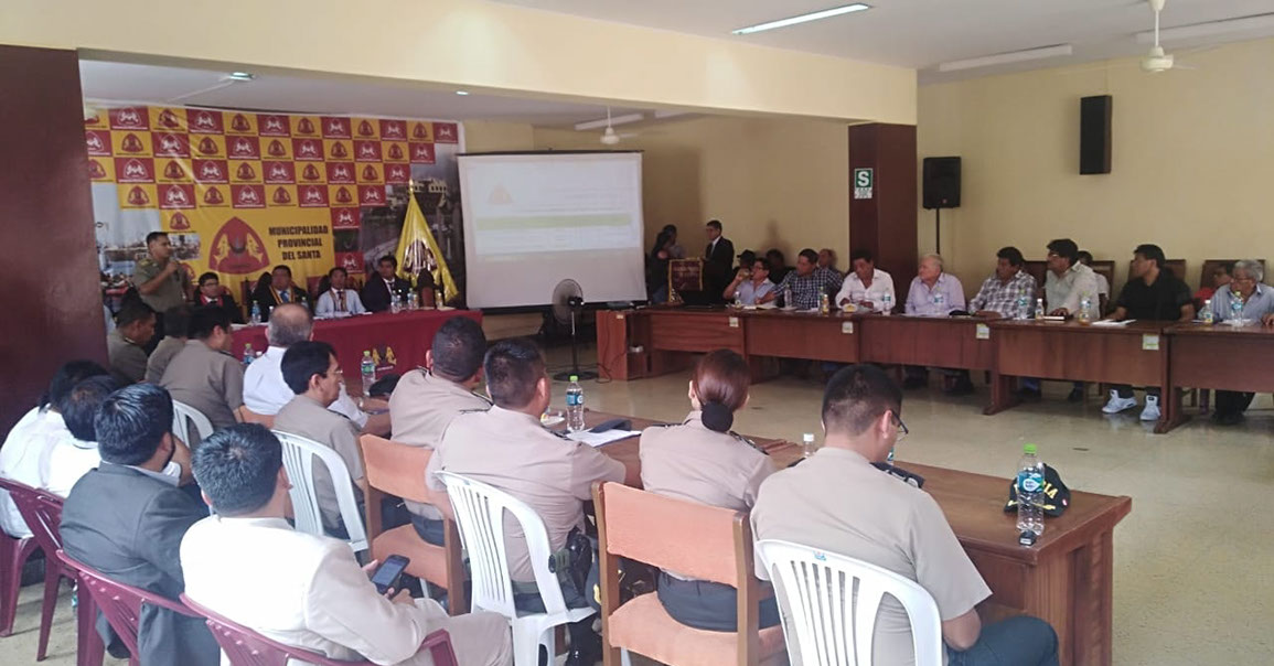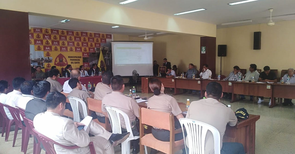 El auditorio de la Municipalidad Provincial del Santa fue el escenario de la reunión del Comité Provincial de Seguridad Ciudadana (COPROSEC), donde el C.P.C Jorge Espejo Llacas en su calidad de teniente alcalde y en representación del alcalde santeño Sr. Eugenio Jara quien por motivos de salud no participó en de dicha reunión donde fueron aprobados 22 puntos del plan para la seguridad ciudadana 2019.