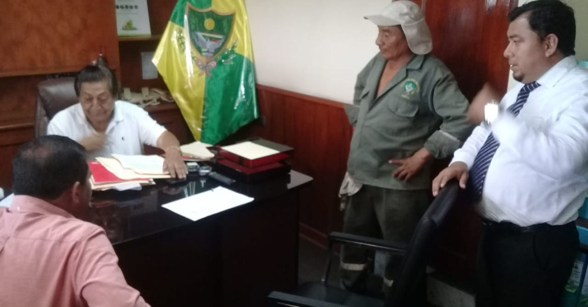 El trabajador municipal en calidad de obrero Pablo Timana Chero con discapacidad auditiva y vocal, fue reincorporado a sus labores por disposición del alcalde Eugenio Jara Acosta, conociendo la realidad de su situación personal y su despido injusto hecho en la gestión anterior.