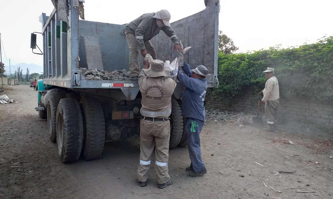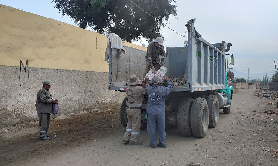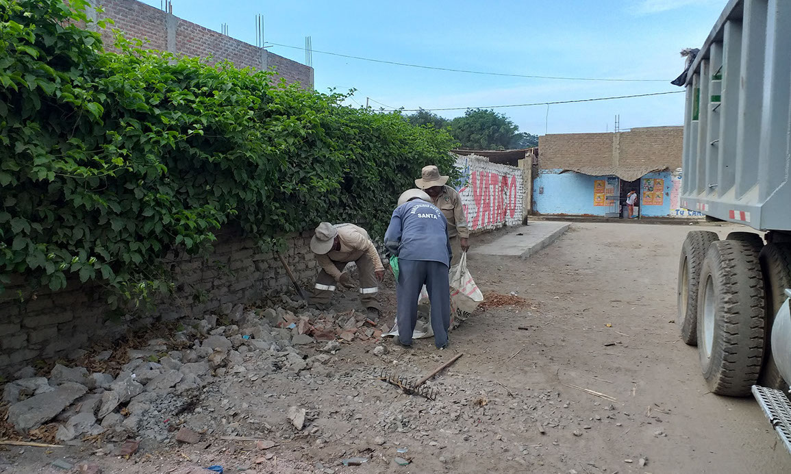 La Municipalidad Distrital de Santa, por disposición del señor alcalde Eugenio Jara Acosta, continúa realizando trabajos de limpieza en diferentes zonas del distrito donde se acumula la basura que personas arrojan de manera inescrupulosa.