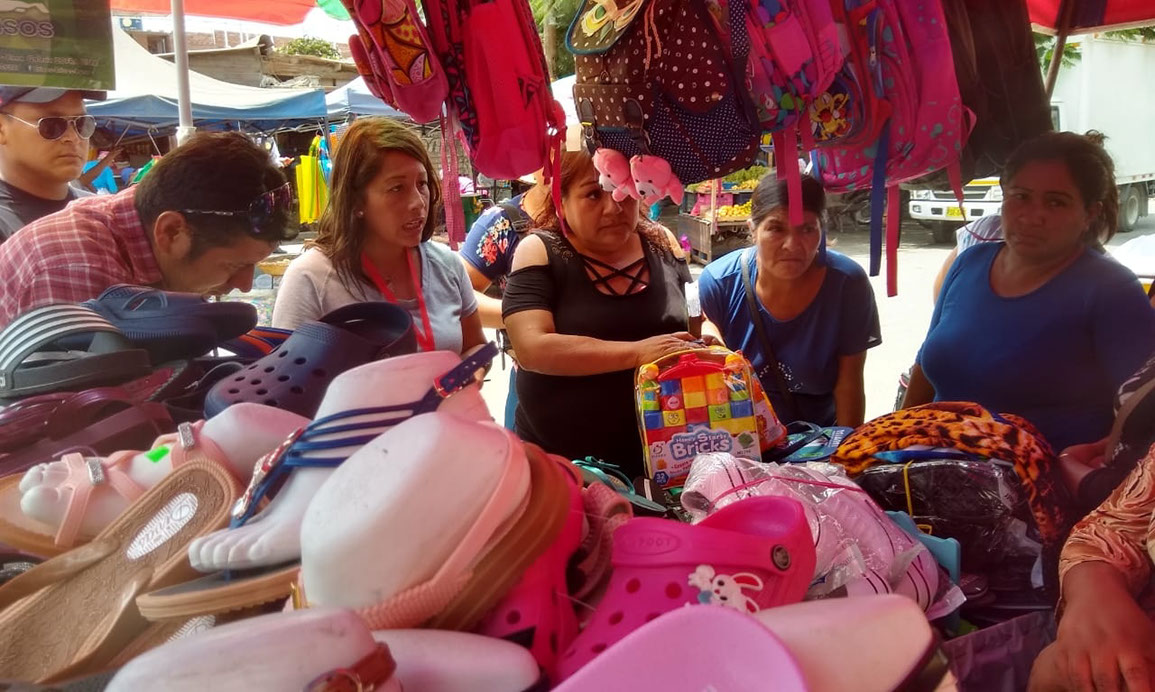 Existen comerciantes informales que cuentan con sus respectivos puestos en el mercado central y mercadillos, sin embargo ocupan las calles causando el desorden, el congestionamiento vehicular y la contaminación.