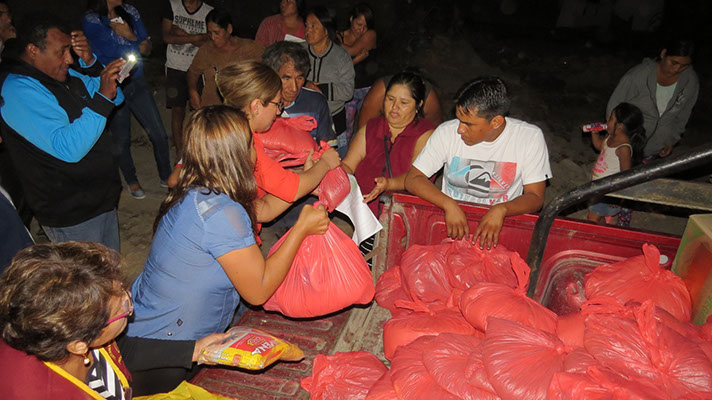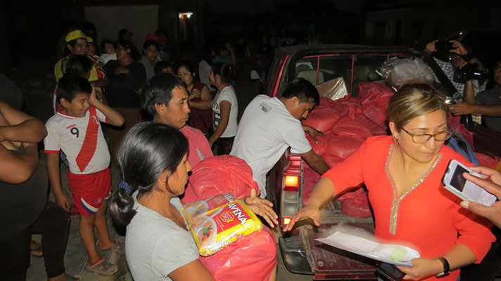 Funcionarios de la Comuna Provincial del Santa, junto con la Plataforma de Defensa Civil del Distrito de Santa, llevaron importante ayuda a los damnificados de la inundacion en Tambo Real Historico, en este acto estuvieron presentes la Regidora Yoshira Flores, el Regidor Iván Arismendiz y el Gerente Municipal Omar Tamayo Quiliche; la ayuda consistió en productos de primera necesidad.