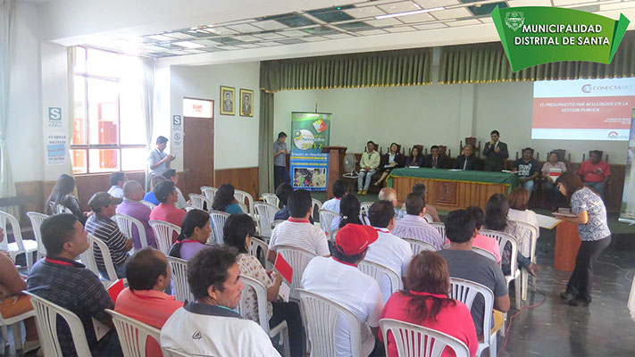 La Municipalidad Distrital de Santa, aperturó los talleres del Presupuesto Participativo 2017, basado en resultados, donde representantes de la Sociedad Civil Organizada, junto con las autoridades, participarón en la apertura de estos importantes talleres, y ademas se eligió a los miembros del equipo técnico y del CCL, quienes fueron juramentados por el señor alcalde del Distrito de Santa, Sr. Germán Rojas Soto.