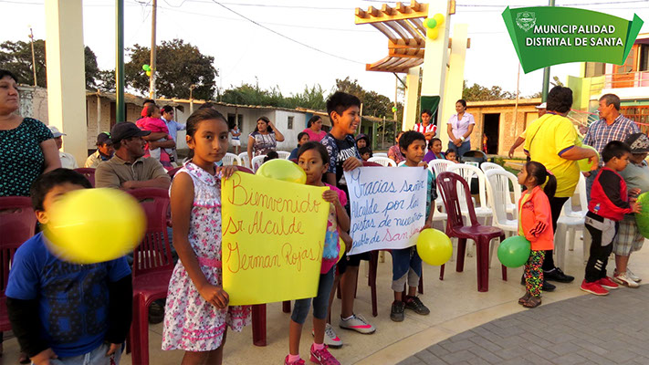La Municipalidad Distrital de Santa inauguró la Obra: Instalación de la Plaza San Dionisio, en el C.P. del mismo nombre. Con la presencia del señor German Rojas Soto, alcalde del Distrito, Regidores y Funcionarios, se hizo entrega de esta moderna obra que mejorará considerablemente el ornato de este centro poblado. Vecinos y autoridades se mostrarón muy contentos por ver concluída esta obra. "Queremos agradecer al Señor Alcalde por su apoyo constante para que este sueño se haga realidad, antes todo este espacio estaba lleno de polvo, ahora con las pistas y veredas inauguradas hace poco, y ahora con esta hermosa plaza, mejorará la calidad de vida de nuestros hijos". Manifesto el Señor Alipio Chávez Lujan, Presidente de la Directiva del C.P. San Dionisio. Con esta inauguración la comuna santeña sigue avanzando con su trabajo de conseguir el anhelado desarrollo de Nuestro Distrito.