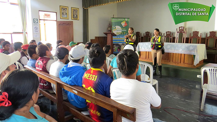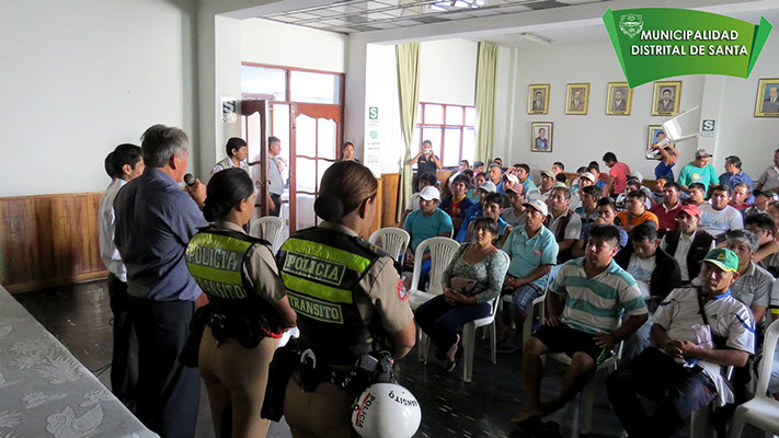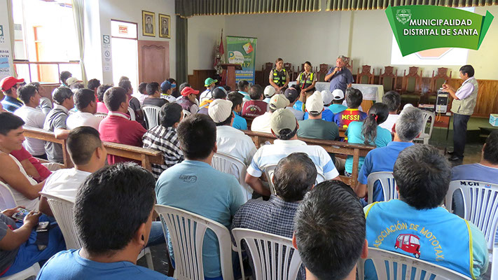 La Municipalidad Distrital de Santa inició el primer curso de Seguridad Vial dirigido a Conductores y Propietarios de Vehículos Menores (mototaxistas), en el alcalde del distrito, Sr. Germán Rojas Soto, participa activamente de este curso, para de esta manera concientizar a los que brindan este servicio, y de esta manera disminuir el indice de accidentes, que lamentablemente esta en ascenso.
