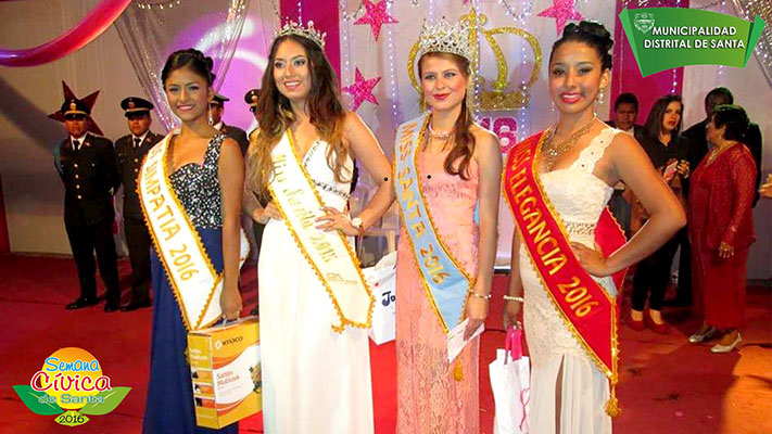 Por inicio de las actividades de la celebración de Aniversario del Distrito de Santa se realizo la elección y coronación de la Miss Santa 2016 donde tuvo diferentes participantes tanto del valle como del distrito, en la cual hemos tenido como animadora de este magno evento de la ex Miss Perú y reconocida conductora de televisión VIVIANA RIVASPLATA.
