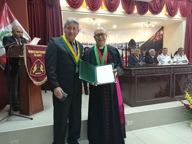 Alcalde de Santa participa en Bodas de Plata de Obispo de Chimbote.